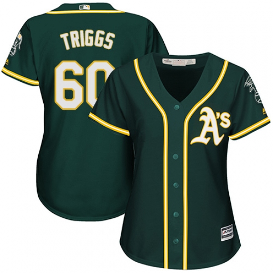 Home>MLB>Oakland Athletics>Andrew Triggs>Women's Majestic Oakland Athletics #60 Andrew Triggs Authentic Green Alternate 1 Cool Base MLB Jersey