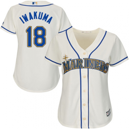 Home>MLB>Seattle Mariners>Hisashi Iwakuma>Women's Majestic Seattle Mariners #18 Hisashi Iwakuma Authentic Cream Alternate Cool Base MLB Jersey