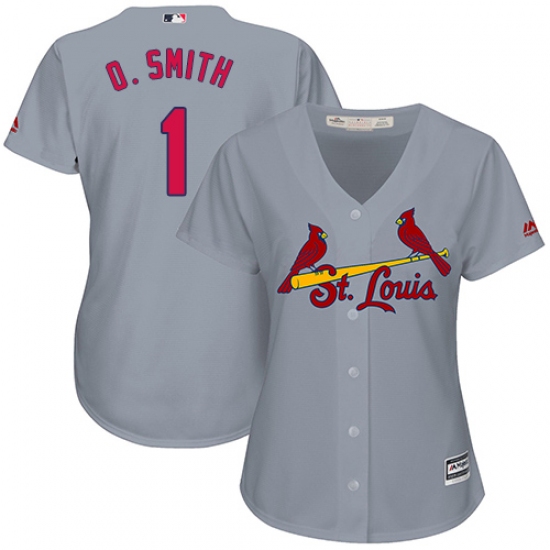 Home>MLB>St. Louis Cardinals>Ozzie Smith>Women's Majestic St. Louis Cardinals #1 Ozzie Smith Authentic Grey Road Cool Base MLB Jersey