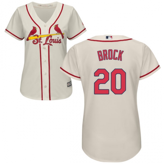 Home>MLB>St. Louis Cardinals>Lou Brock>Women's Majestic St. Louis Cardinals #20 Lou Brock Authentic Cream Alternate Cool Base MLB Jersey