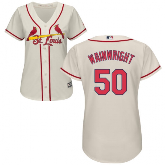 Home>MLB>St. Louis Cardinals>Adam Wainwright>Women's Majestic St. Louis Cardinals #50 Adam Wainwright Authentic Cream Alternate Cool Base MLB Jersey