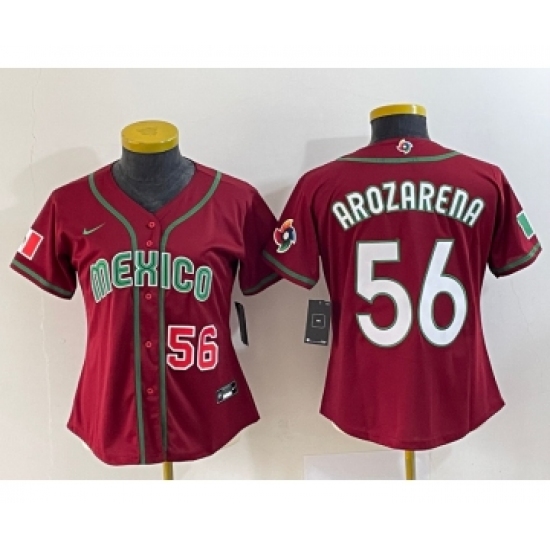 >Women's Mexico Baseball #56 Randy Arozarena Number 2023 Red World Classic Stitched Jersey 1