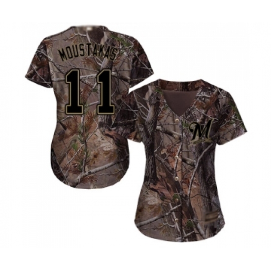 Women's Milwaukee Brewers #11 Mike Moustakas Authentic Camo Realtree Collection Flex Base Baseball Jersey
