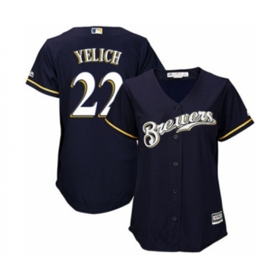 Women's Milwaukee Brewers #22 Christian Yelich Authentic Navy Blue Alternate Cool Base Baseball Player Jersey