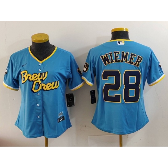 Women's Milwaukee Brewers #28 Joey Wiemer Blue 2022 City Connect Cool Base Stitched Jerseys