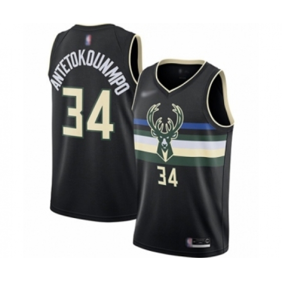 >Women's Milwaukee Bucks #34 Giannis Antetokounmpo Swingman Black Finished Basketball Jersey - Statement Edition