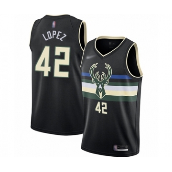 Men's Milwaukee Bucks #42 Robin Lopez Authentic Black Finished Basketball Jersey - Statement Edition