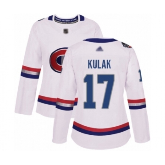 >Women's Montreal Canadiens #17 Brett Kulak Authentic White 2017 100 Classic Hockey Jersey