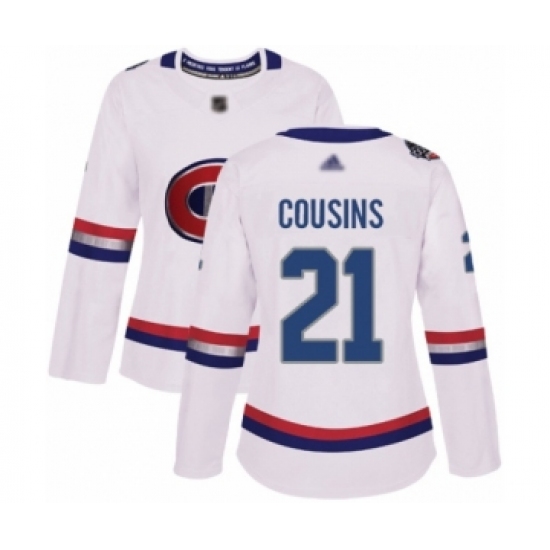 >Women's Montreal Canadiens #21 Nick Cousins Authentic White 2017 100 Classic Hockey Jersey
