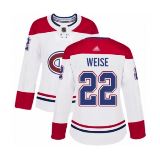 Women's Montreal Canadiens #22 Dale Weise Authentic White Away Hockey Jersey