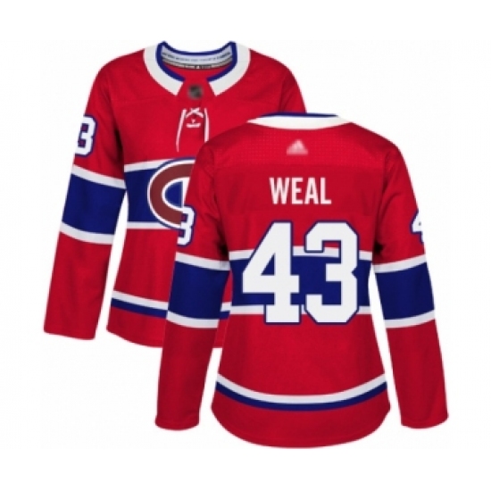 >Women's Montreal Canadiens #43 Jordan Weal Authentic Red Home Hockey Jersey