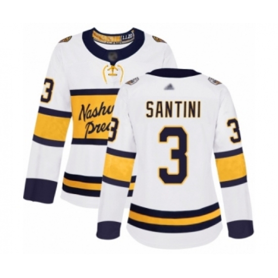 >Women's Nashville Predators #3 Steven Santini Authentic White 2020 Winter Classic Hockey Jersey