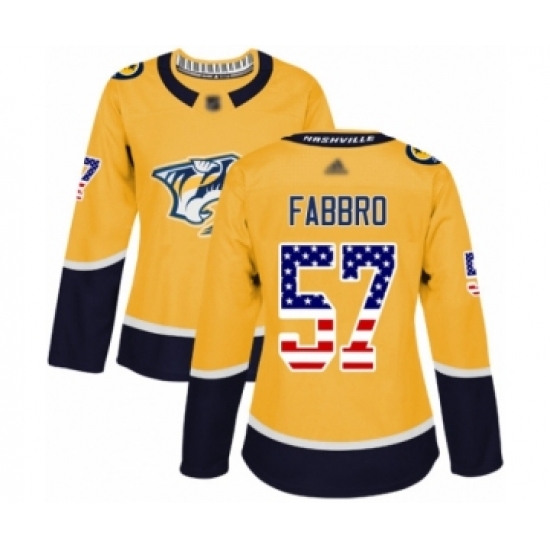 >Women's Nashville Predators #57 Dante Fabbro Authentic Gold USA Flag Fashion Hockey Jersey