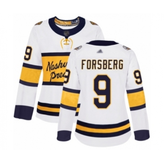 >Women's Nashville Predators #9 Filip Forsberg Authentic White 2020 Winter Classic Hockey Jersey