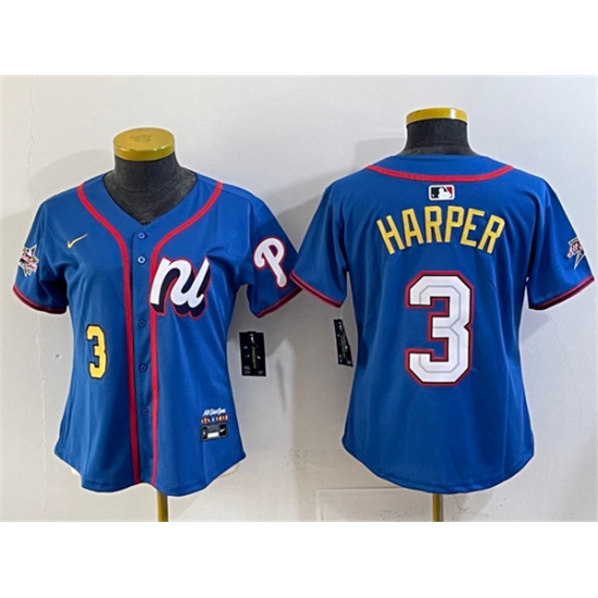 >Women's National League #3 Bryce Harper Blue 2025 All-Star Edition Limited Stitched Baseball Jersey(Run Small)