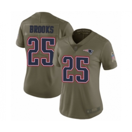 >Women's New England Patriots #25 Terrence Brooks Limited Olive 2017 Salute to Service Football Jersey