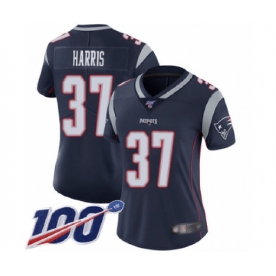 >Women's New England Patriots #37 Damien Harris Navy Blue Team Color Vapor Untouchable Limited Player 100th Season Football Jersey