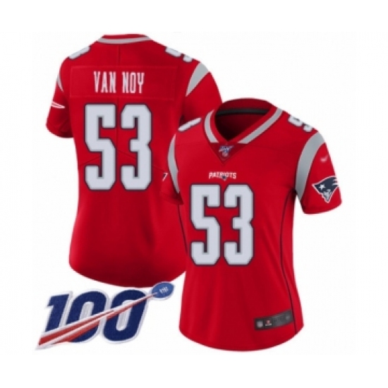 >Women's New England Patriots #53 Kyle Van Noy Limited Red Inverted Legend 100th Season Football Jersey