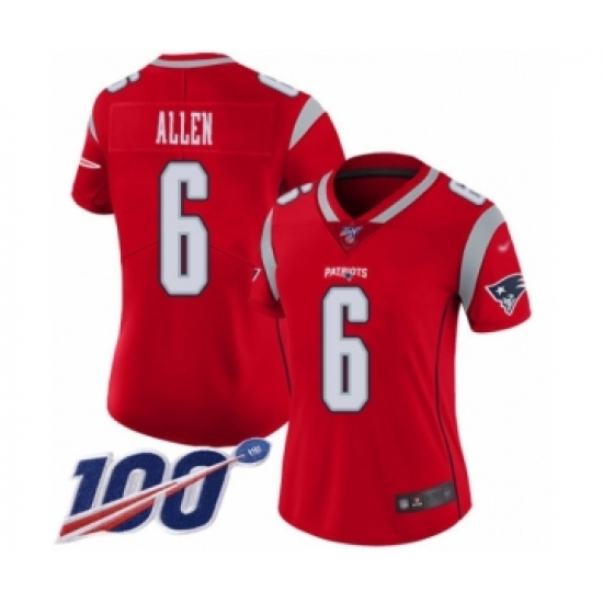 >Women's New England Patriots #6 Ryan Allen Limited Red Inverted Legend 100th Season Football Jersey