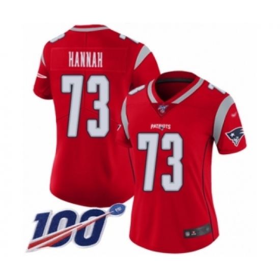 >Women's New England Patriots #73 John Hannah Limited Red Inverted Legend 100th Season Football Jersey
