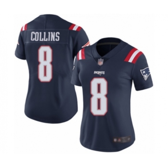 >Women's New England Patriots #8 Jamie Collins Limited Navy Blue Rush Vapor Untouchable Football Jersey