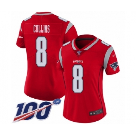 >Women's New England Patriots #8 Jamie Collins Limited Red Inverted Legend 100th Season Football Jersey