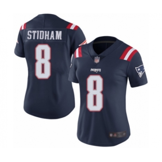 >Women's New England Patriots #8 Jarrett Stidham Limited Navy Blue Rush Vapor Untouchable Football Jersey