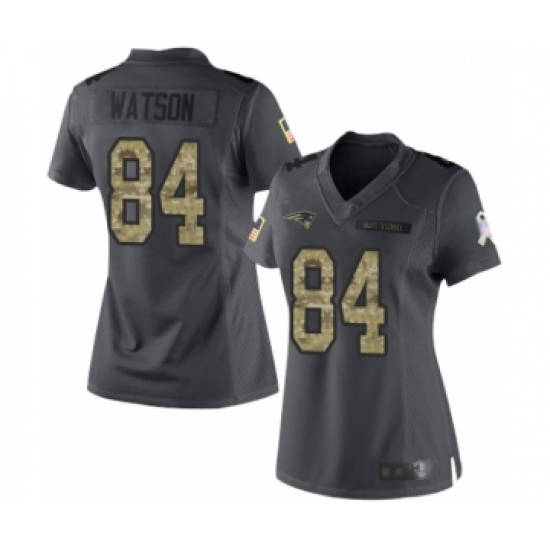 >Women's New England Patriots #84 Benjamin Watson Limited Black 2016 Salute to Service Football Jersey