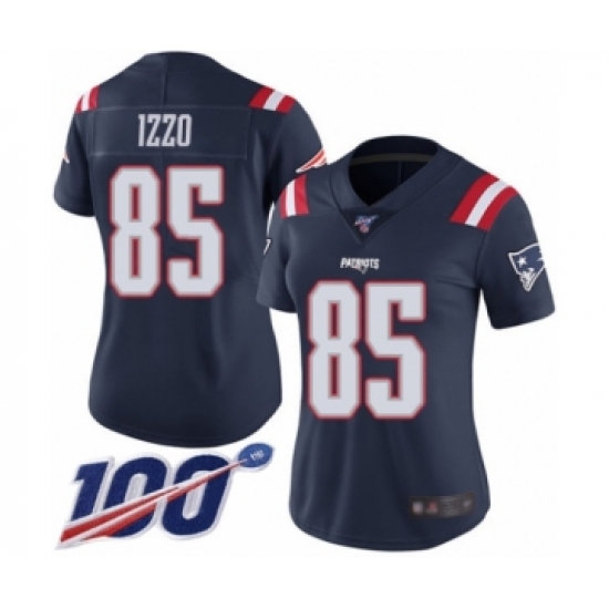 >Women's New England Patriots #85 Ryan Izzo Limited Navy Blue Rush Vapor Untouchable 100th Season Football Jersey