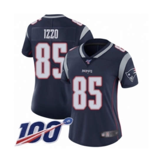 >Women's New England Patriots #85 Ryan Izzo Navy Blue Team Color Vapor Untouchable Limited Player 100th Season Football Jersey