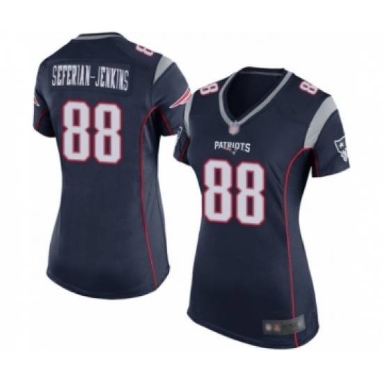 >Women's New England Patriots #88 Austin Seferian-Jenkins Game Navy Blue Team Color Football Jersey