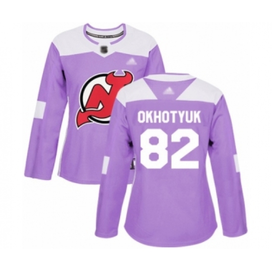 >Women's New Jersey Devils #82 Nikita Okhotyuk Authentic Purple Fights Cancer Practice Hockey Jersey