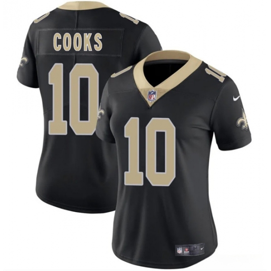 >Women's New Orleans Saints #10 Brandin Cooks Black 2025 Vapor Limited Football Stitched Jersey(Run Small)