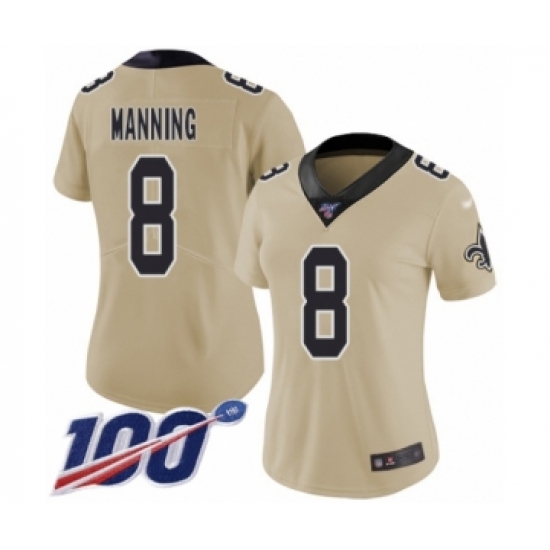 >Women's New Orleans Saints #8 Archie Manning Limited Gold Inverted Legend 100th Season Football Jersey