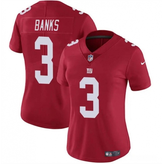 >Women's New York Giants #3 Deonte Banks Red Vapor Stitched Jersey(Run Small)