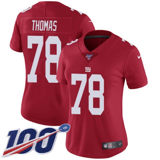 >Women's New York Giants #78 Andrew Thomas Red Alternate Stitched NFL 100th Season Vapor Untouchable Limited Jersey