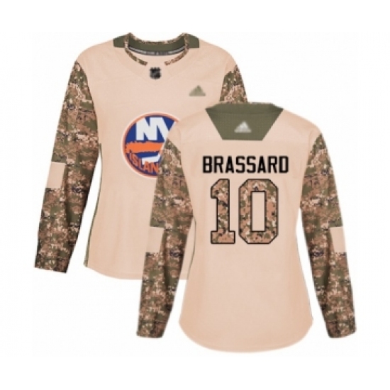>Women's New York Islanders #10 Derick Brassard Authentic Camo Veterans Day Practice Hockey Jersey