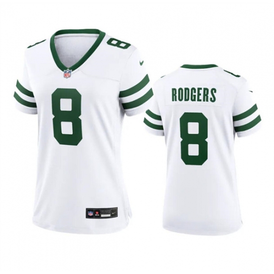 Women's New York Jets #8 Aaron Rodgers White 2024 Football Stitched Jersey(Run Small)