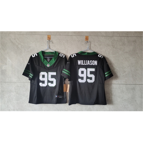 >Women's New York Jets #95 Quinnen Williams Black F.U.S.E. Vapor Stitched Jersey(Run Small)