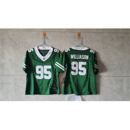 >Women's New York Jets #95 Quinnen Williams Green F.U.S.E. Vapor Stitched Jersey(Run Small)