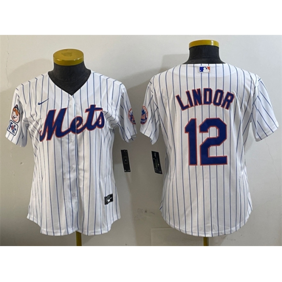 Women's New York Mets #12 Francisco Lindor White 2025 Spring Training Cool Base Stitched Baseball Jersey(Run Small)
