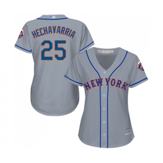 >Women's New York Mets #25 Adeiny Hechavarria Authentic Grey Road Cool Base Baseball Jersey