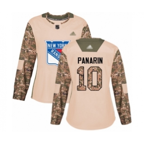 >Women's New York Rangers #10 Artemi Panarin Authentic Camo Veterans Day Practice Hockey Jersey