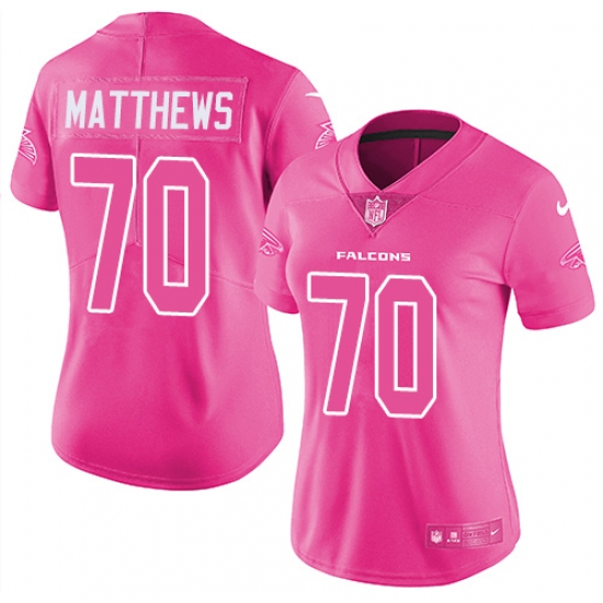 Home>NFL>Atlanta Falcons>Jake Matthews>Women's Nike Atlanta Falcons #70 Jake Matthews Limited Pink Rush Fashion NFL Jersey