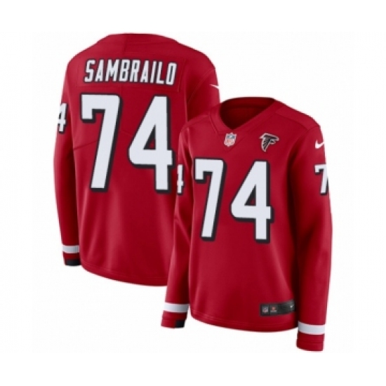 Women's Nike Atlanta Falcons #74 Ty Sambrailo Limited Red Therma Long Sleeve NFL Jersey
