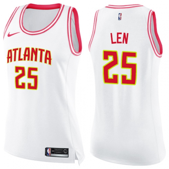 Women's Nike Atlanta Hawks #25 Alex Len Swingman White Pink Fashion NBA Jersey