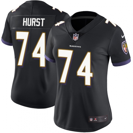 Home>NFL>Baltimore Ravens>James Hurst>Women's Nike Baltimore Ravens #74 James Hurst Black Alternate Vapor Untouchable Limited Player NFL Jersey