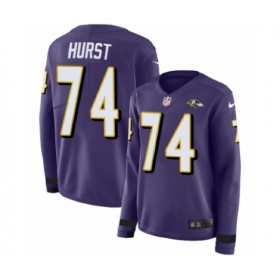 Women's Nike Baltimore Ravens #74 James Hurst Limited Purple Therma Long Sleeve NFL Jersey