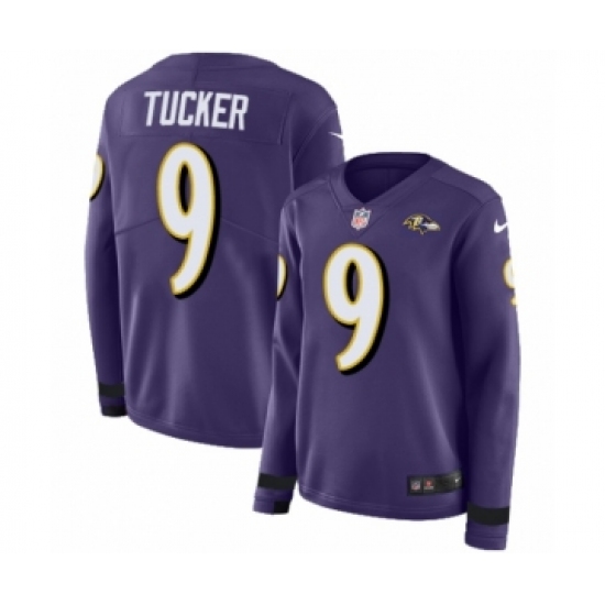 Women's Nike Baltimore Ravens #9 Justin Tucker Limited Purple Therma Long Sleeve NFL Jersey