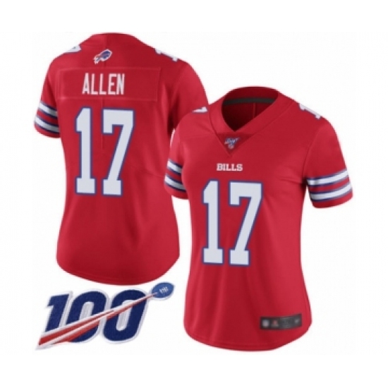>Women's Nike Buffalo Bills #17 Josh Allen Limited Red Rush Vapor Untouchable 100th Season NFL Jersey
